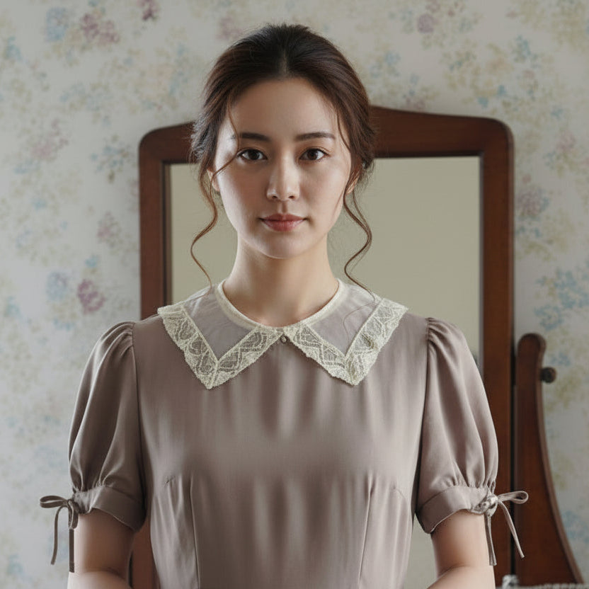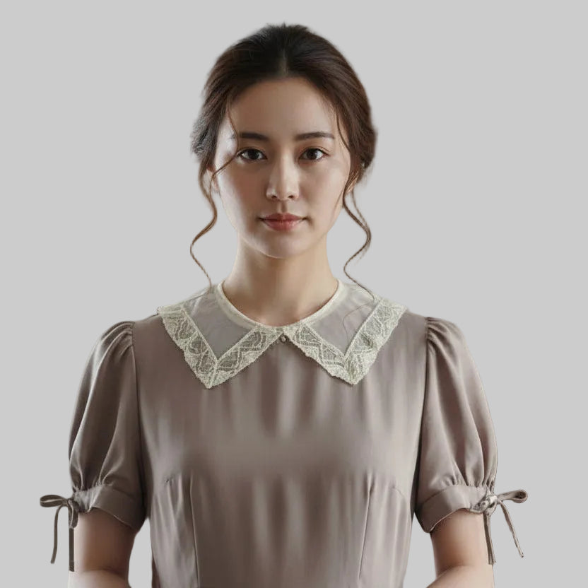 This dainty Victorian lace collar features a soft, pale yellow tint, crafted from exquisite French Valenciennes bobbin lace. The superfine silk mesh adds an elegant, delicate touch to the design, making it a beautiful vintage piece. With a 15-inch neckline and 4-inch points, it offers a graceful and refined fit. In authentic vintage condition, this collar shows a tiny hole at the edge, which is visible in the images.