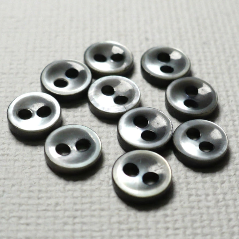 Uses: Perfect for delicate projects: doll clothes restoration, heirloom sewing on fine linens or antique garments, baby items, vintage lingerie accents, tiny collar/cuff details, or craft embellishments where a small, elegant button is needed. The grey tone pairs wonderfully with neutral, soft, or period fabrics for an authentic vintage look.