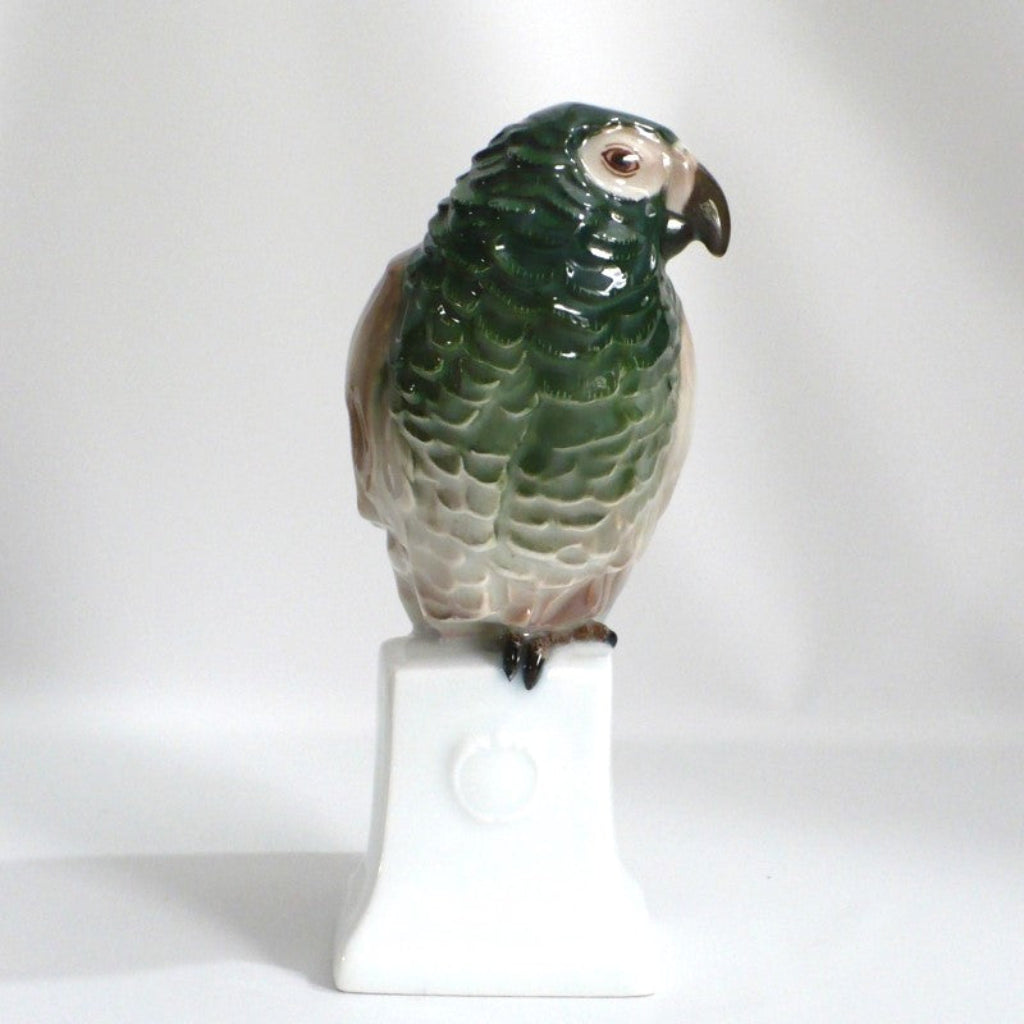 A stunning porcelain parrot figurine by artist Dorothea Moldenhauer for Rosenthal. The base is incised with the press mark Moldenhauer and bears the Rosenthal Bavaria mark. This mark was used between 1919 and 1935. The quality of the hand-painted details indicates this as an early work. The mold number S 22 is also on the base.