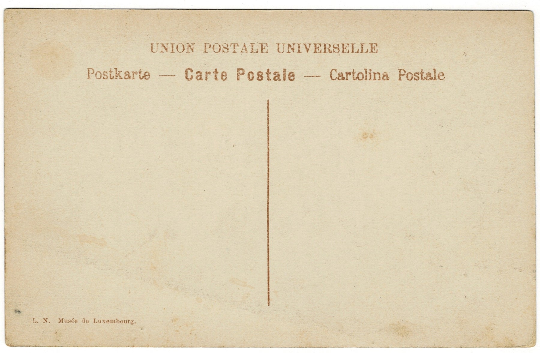 This vintage postcard reproduces Jacques-Émile Blanche’s 1895 oil on canvas Le Peintre Thaulow et ses enfants, depicting the Norwegian landscape painter Frits Thaulow surrounded by his family. On this postcard, the back lists the work as being from the N. Luxembourg Museum, reflecting its earlier exhibition history before entering the Musée d’Orsay collection.
