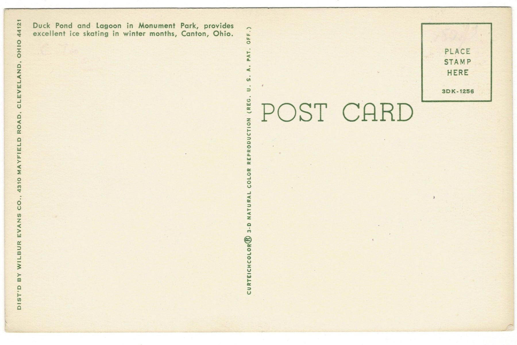 There’s something wonderfully nostalgic about a small-town park scene: calm water reflecting leafy trees, white ducks gliding across the pond, and the promise of winter turning the lagoon into a lively skating spot. This vintage postcard captures that timeless charm at Monument Park in Canton, Ohio, where summer serenity and winter recreation met in one beloved community gathering place.