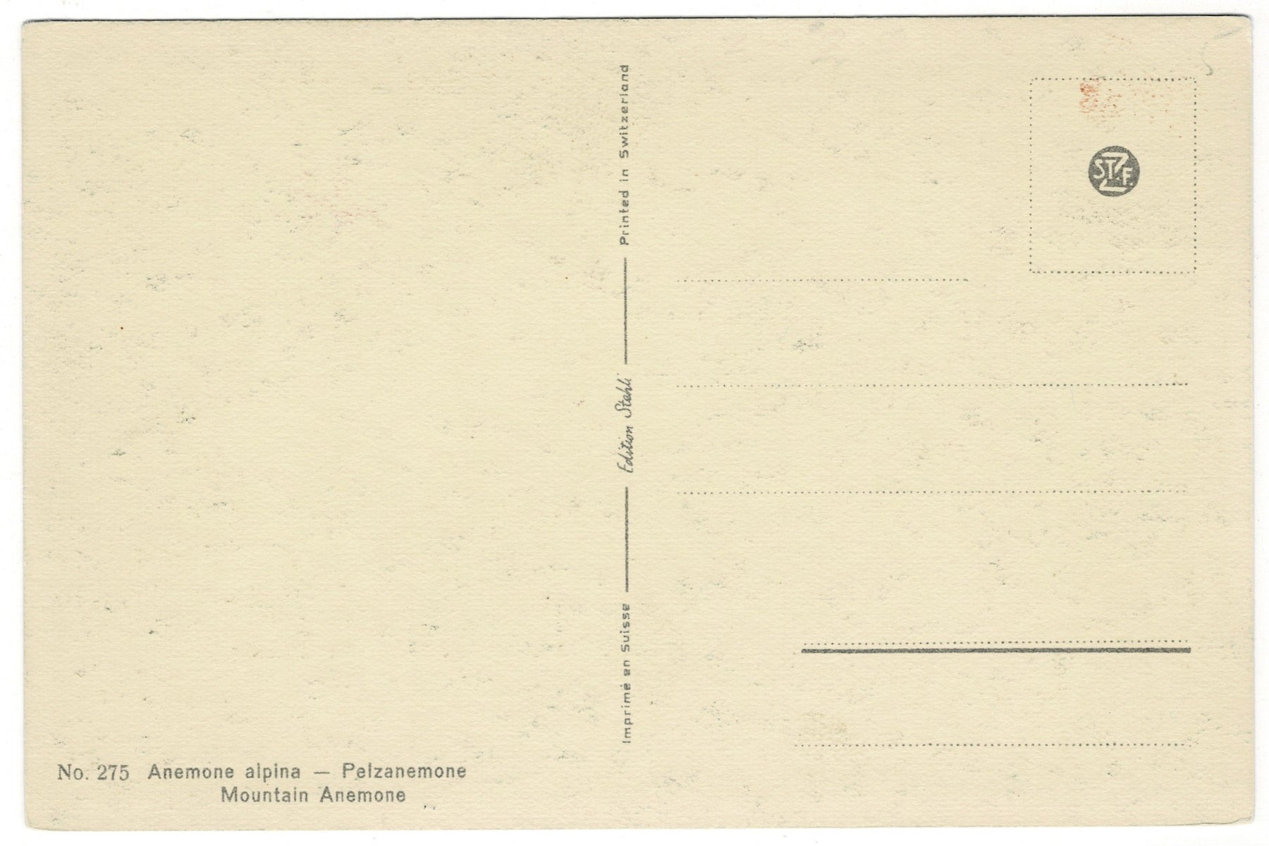 This vintage Swiss postcard, dating from the 1940s and printed by Edition Stahli, Imprimé en Suisse, carries all the charm of mid-century European botanical prints. Perfect for collectors of vintage postcards, alpine flora, or early spring blooms, it makes a delicate and inspiring display piece, bringing the quiet magic of early spring into any collection or home.