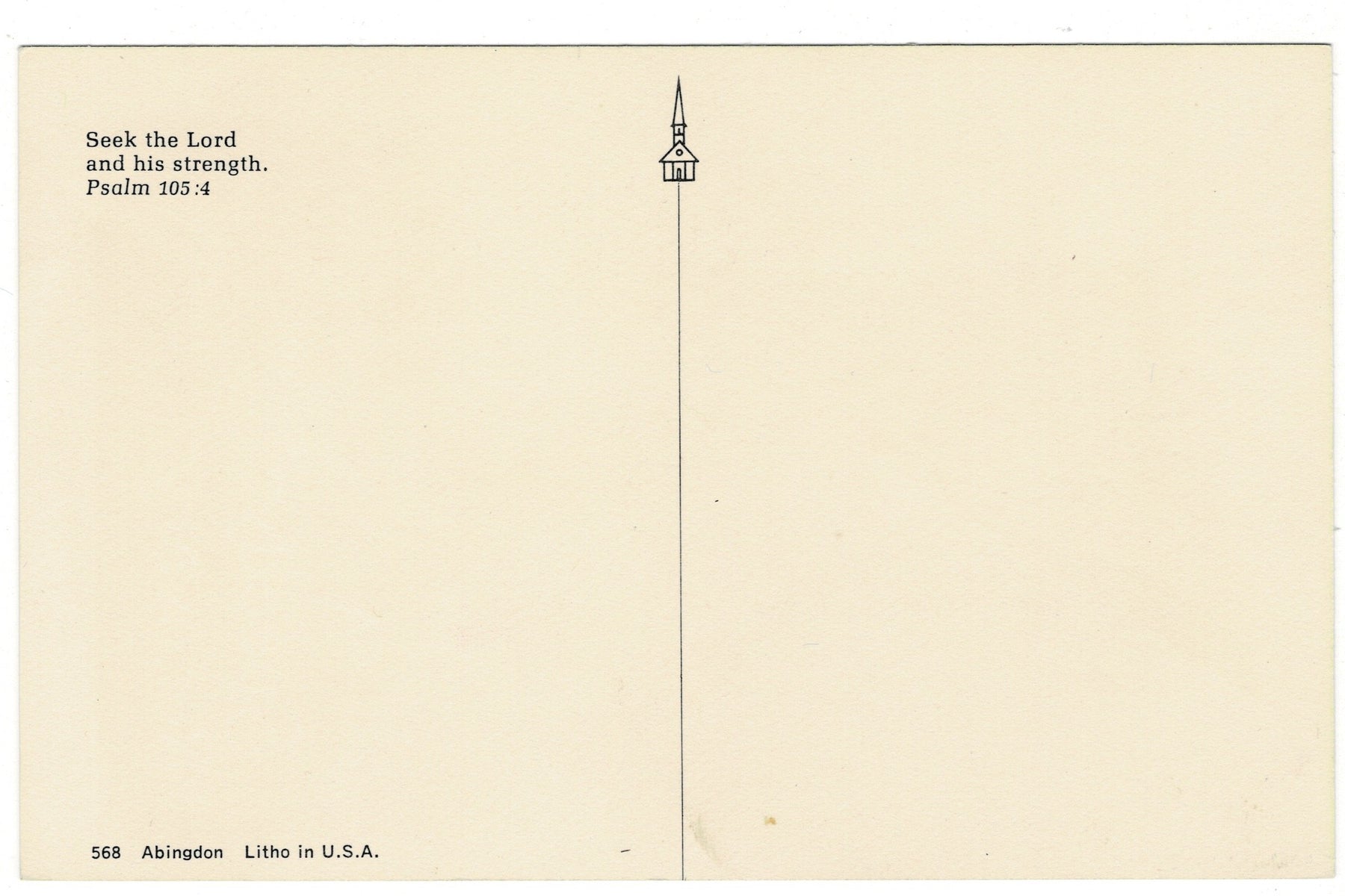 On the back of the card is the biblical verse from Psalm 105:4, “Seek the Lord and His strength,” a timeless exhortation from a psalm attributed to King David celebrating the Ark of the Covenant, offering comfort, hope, and spiritual support to the recipient.
