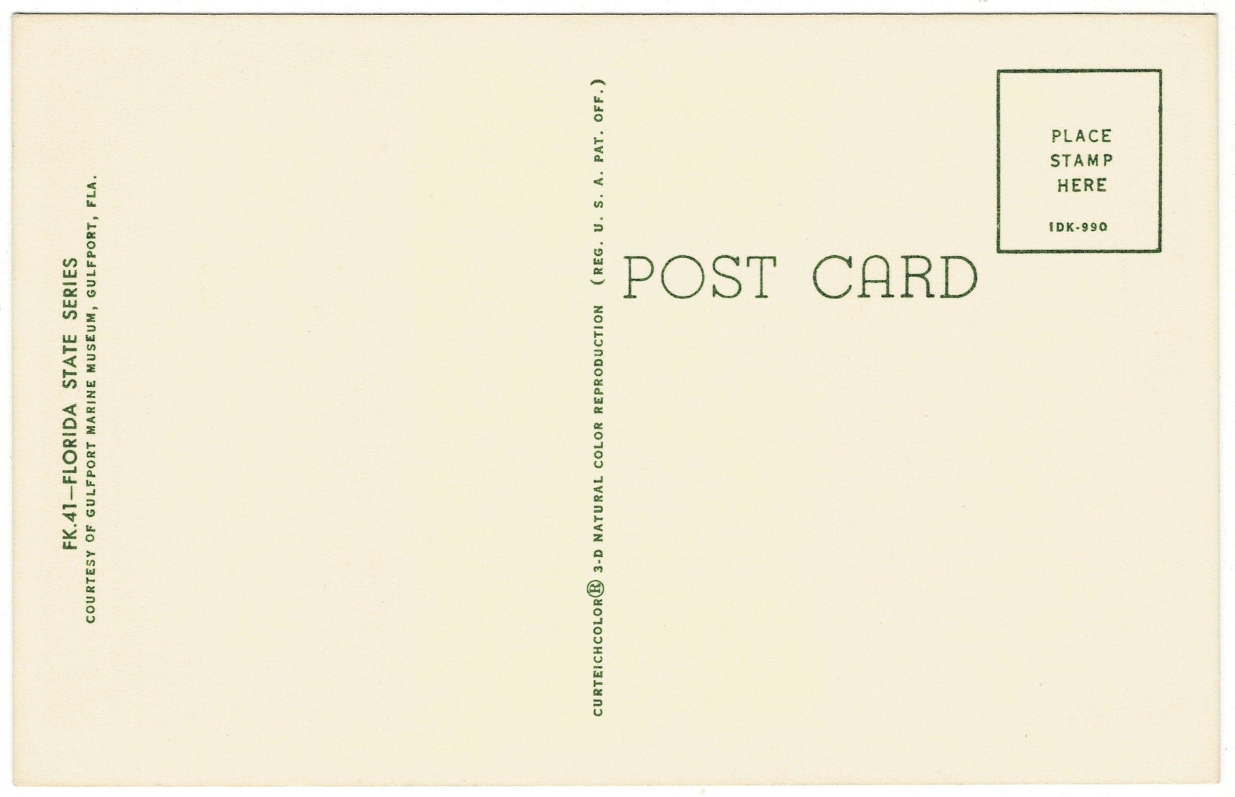 While this card carries the imprint of the Gulfport Marine Museum in Gulfport, Florida, it was part of a wider coastal souvenir culture in the 1960s. Versions of this postcard and small boxed kits containing a sail catfish bone and printed legend were sold at docks, beach gift shops, and roadside stands up and down the Gulf Coast.