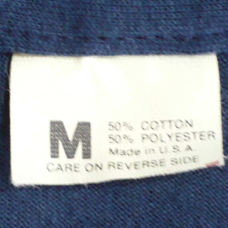 Label: M, 50% COTTON, 50% POLYESTER, Made in USA. ("Screen Stars" logo has been cut off from the bottom half of the tag. I assume it irritated the original owner. See images.)