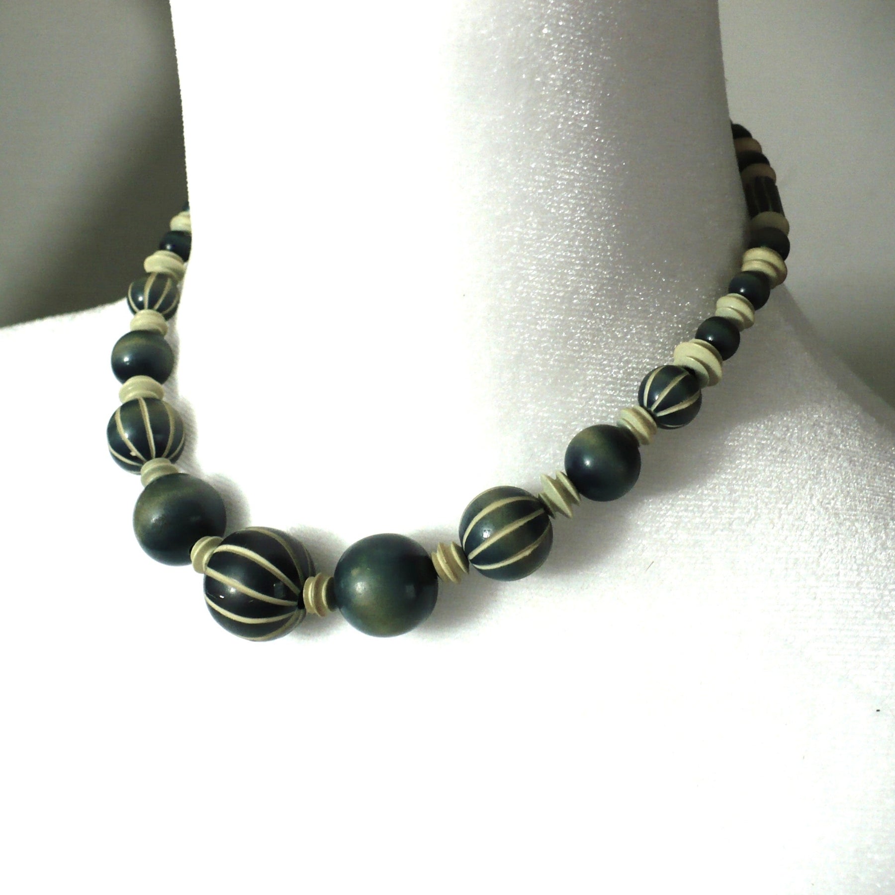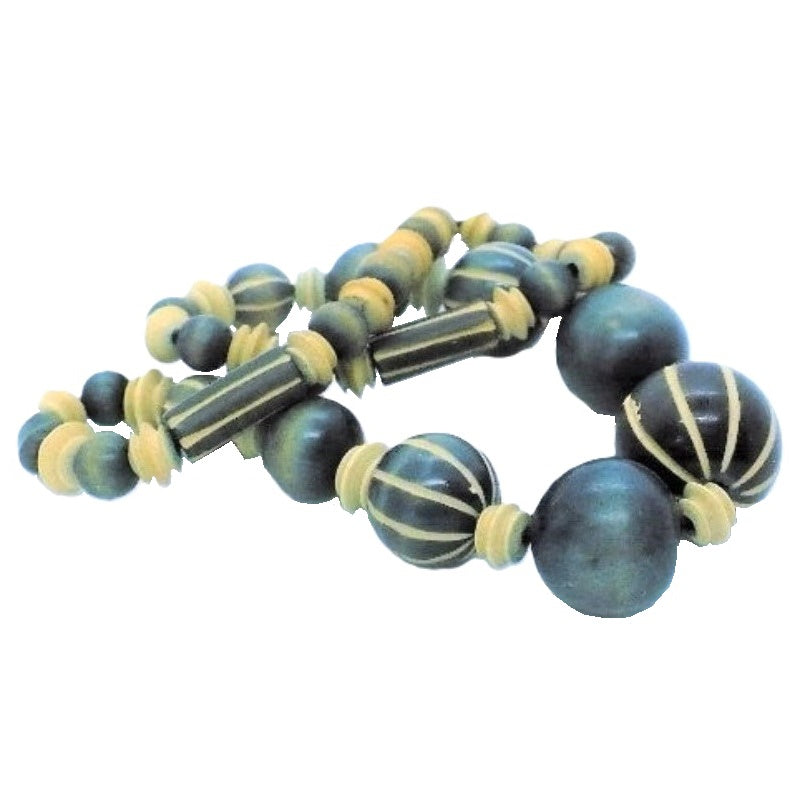 Pumtek beads have a fascinating history: they were highly prized by the Javanese in Southeast Asia, where they were often used in ceremonial and royal adornments. The beads were traditionally carved and polished from ancient fossilized wood, a material that is thousands of years old, giving the jewelry an intrinsic connection to nature and history. In the 1920s, during the height of the Art Deco era, Pumtek beads became popular in Western fashion as collectors and jewelry designers sought out exotic materials to incorporate into their creations.