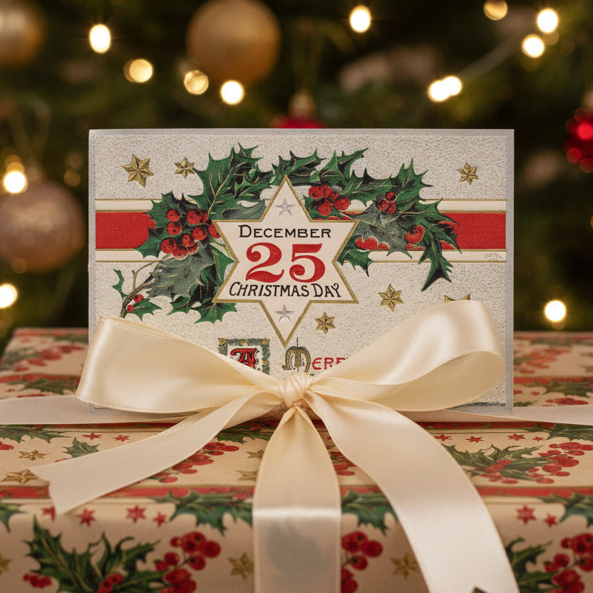 1909 Christmas Day December 25 Vintage Embossed and Gilded Postcard, gift topper.