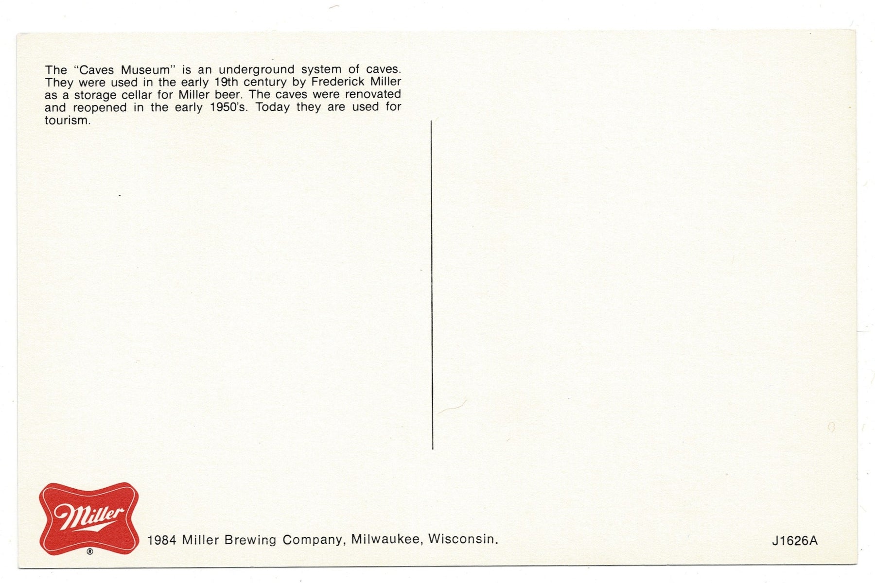 1984 Miller High Life Caves, Milwaukee Wisconsin Vintage Postcard.