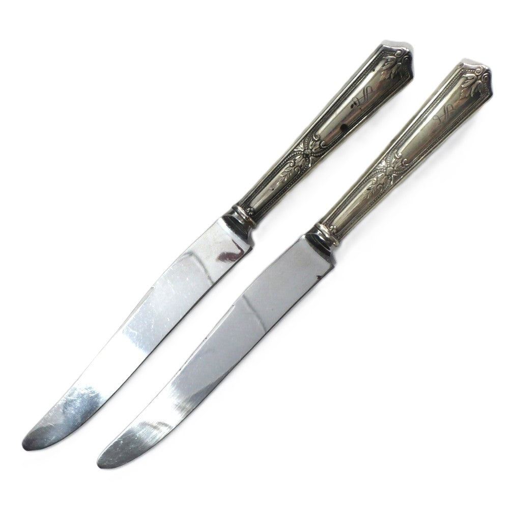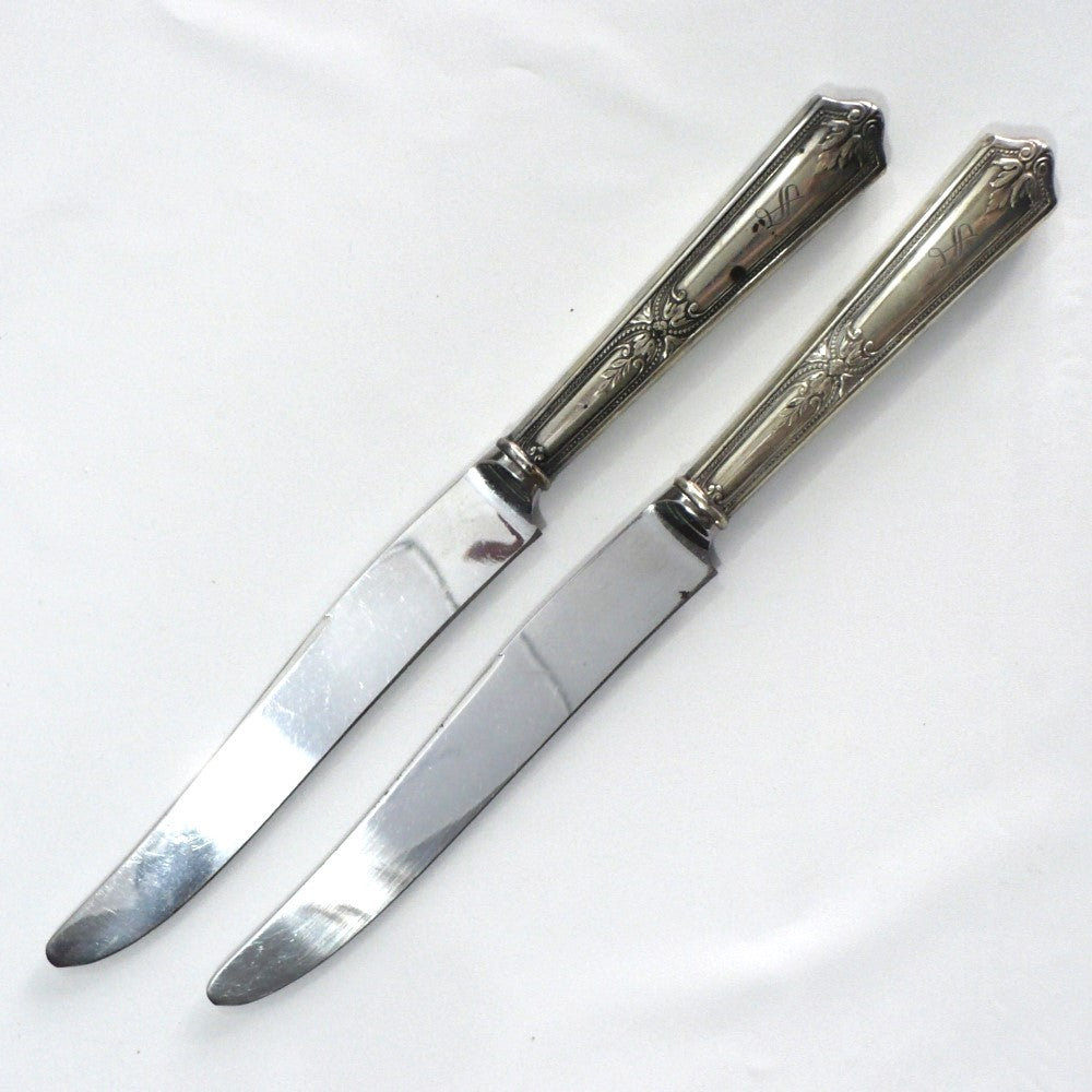 1931. Pair of Regent pattern by Alvin. Two "New French Hollow Knives" measure 9 5/8 inches. "S" Monogram on the handle. Sterling silver handles, stainless blades. The name of the size of this knife has the word "New" in it, but these are used, and in as-shown condition.