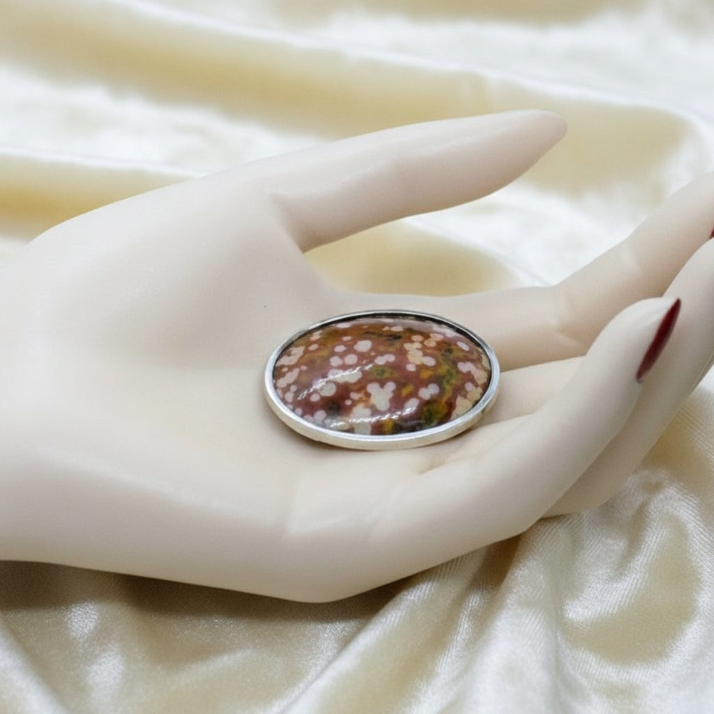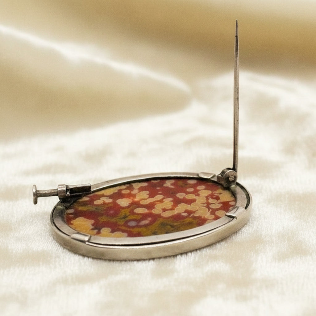 1890 Victorian Ocular Ocean Jasper Oval Cabochon Brooch Antique Jewelry.