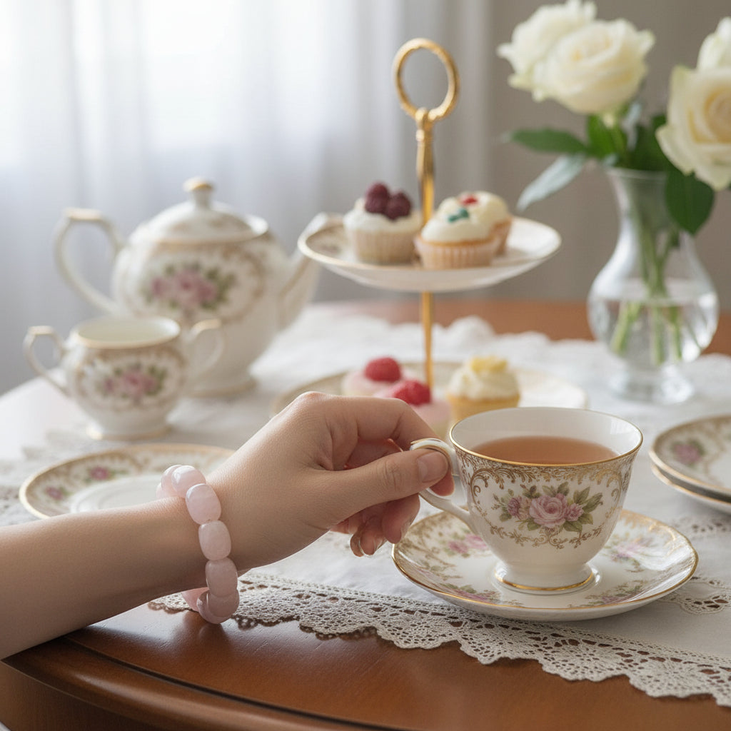 This vintage 1980s rose quartz bracelet features chunky, polished gemstone beads and a sterling silver nautical-style spring ring clasp. Rose quartz is known as the Stone of Love and has long been associated with attraction, calm, and emotional healing.