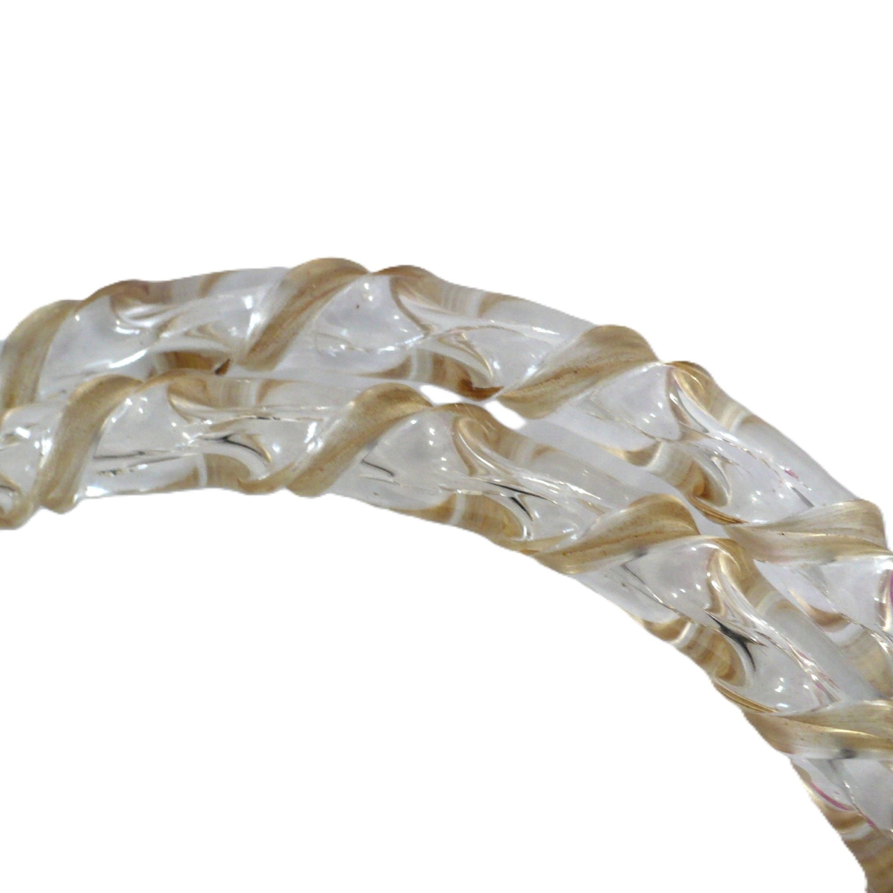 The marbled gold and clear twist lucite bracelet handles add a touch of elegance, while the metal Talon zipper closure at the base of the handles operates smoothly despite its snug fit.