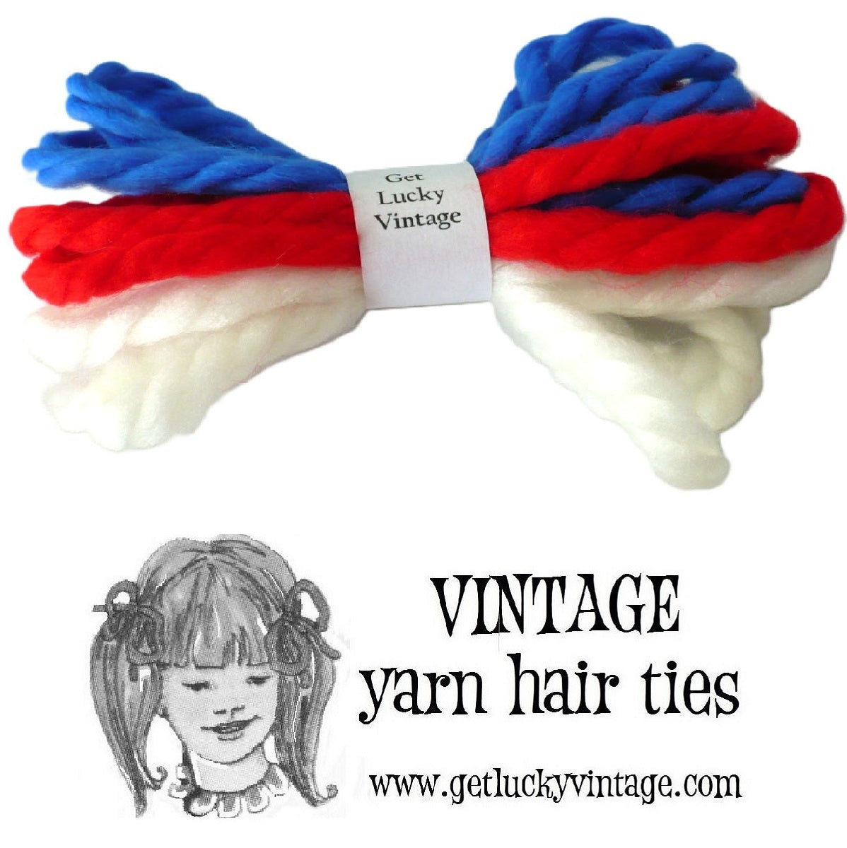 Authentic vintage yarn hair ties are as charming as ever, perfect for adding a touch of nostalgia to your style. Our holiday-themed Independence Day gift bundle includes genuine vintage hair ties from the 1960s and 1970s, all in mint condition and sourced from vintage manufacturer’s store stock.