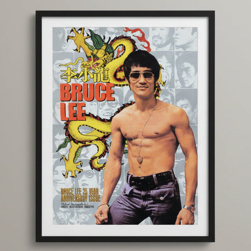 Vintage 25th memorial centerfold poster of Bruce Lee. This commemorative poster honors the legendary martial arts icon and captures his enduring legacy in film and popular culture. A must-have collectible for fans of Bruce Lee and martial arts memorabilia.