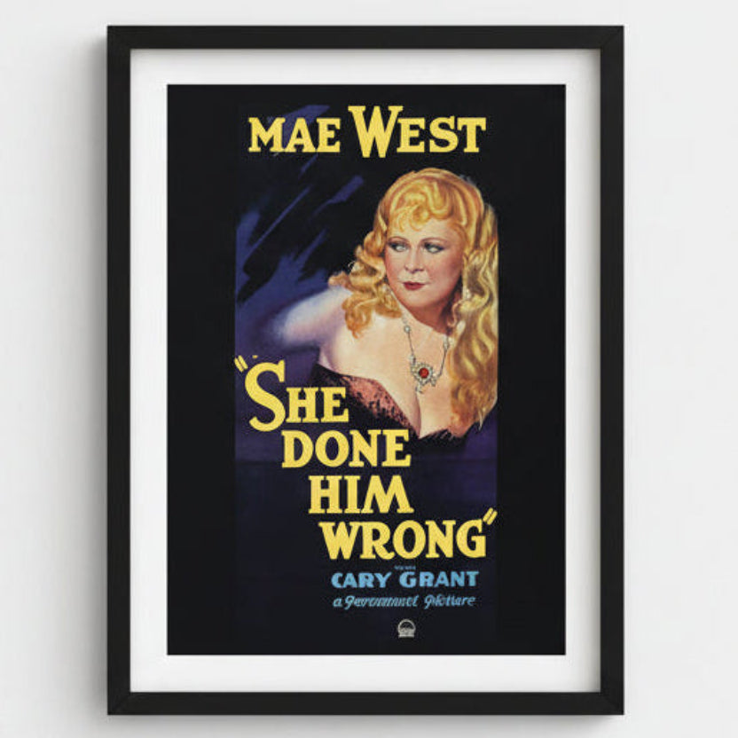 An original vintage Mae West centerfold movie poster from She Done Him Wrong, measuring approximately 16" x 11". This collectible captures the charm and star power of the legendary actress in one of her most iconic film roles, making it a standout addition for fans of classic Hollywood and vintage movie memorabilia.