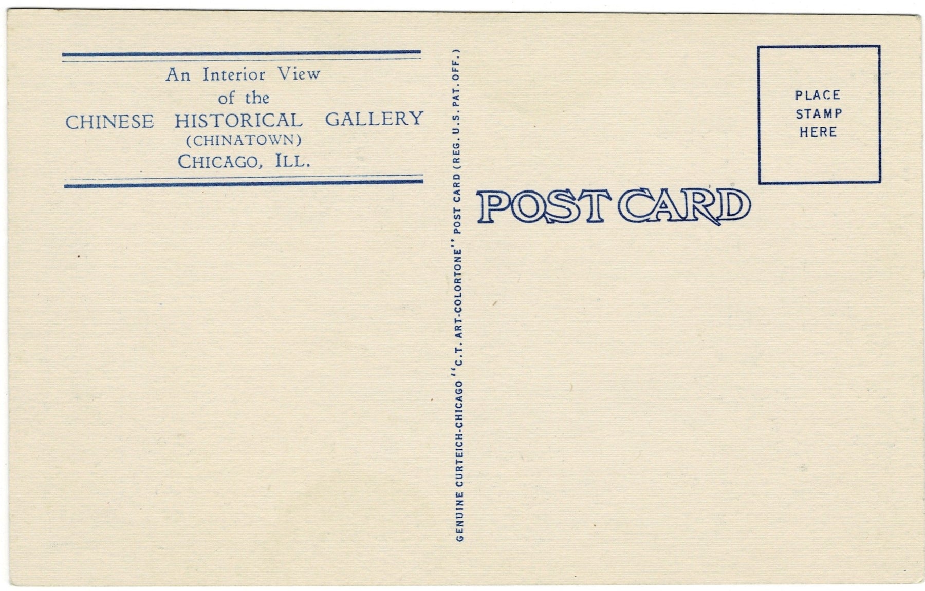 This 1933 postcard offers a glimpse of the Ling Long Historical Gallery in Chicago’s Chinatown, a place that once showcased the rich cultural heritage of the Chinese-American community in the Windy City. Located in the heart of Chinatown, the gallery was part of the vibrant 1933 Century of Progress Exposition, which highlighted diverse cultures and advancements in art, technology, and architecture.