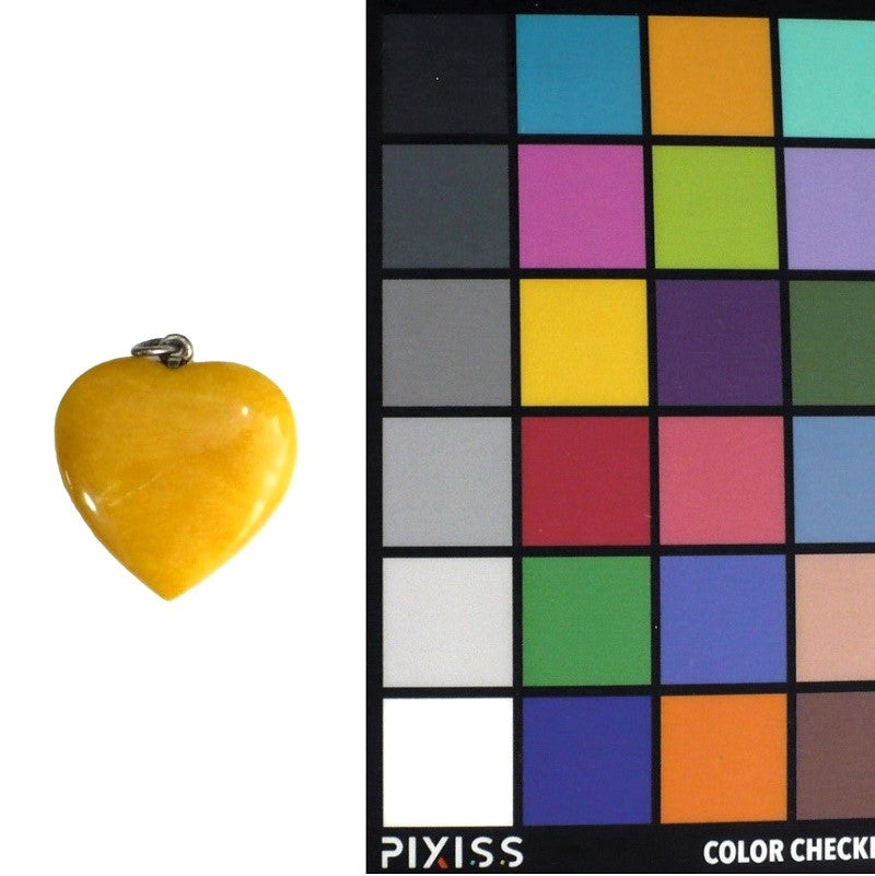 This 1980s vintage heart pendant is carved from polished yellow calcite, known for its warm, uplifting energy. Measuring approximately 30 x 30 mm, it symbolizes clarity, joy, and confidence. Yellow calcite is also associated with cleansing the Solar Plexus Chakra and boosting mental focus.