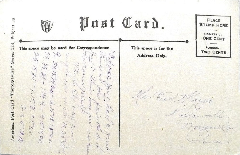 The real standout mystery is a lengthy personal secret code in hyphenated number groups, for example 2-26-15-37-81, 2-25-35-29-1-11-24-20-, and more clusters down the left side. This is a classic early 1900s postcard cipher. Senders used homemade number substitutions to hide private romantic details from prying eyes (post office, family, etc.). The code remains undeciphered, which is common for personal keys. It adds huge intrigue. Cryptography fans, ephemera collectors, and romance history buffs will love trying to crack it.