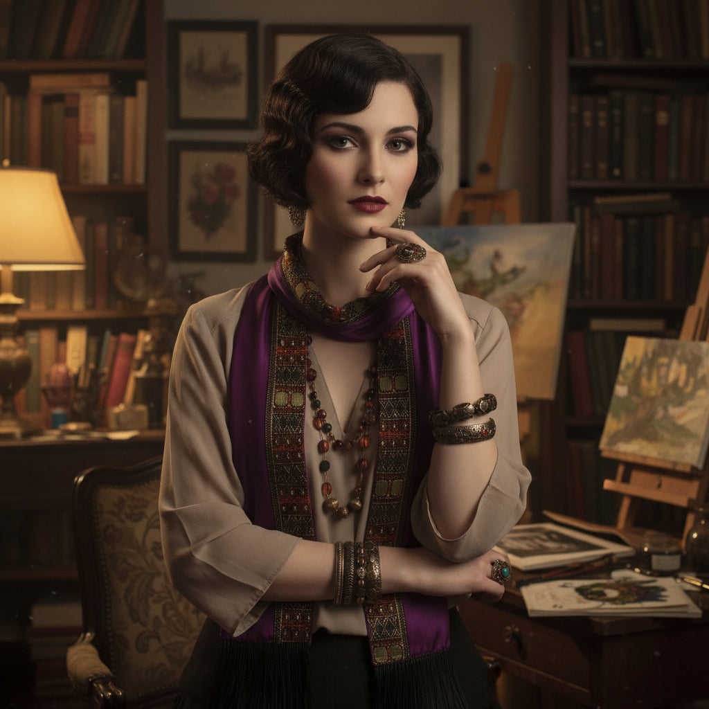 This stunning piece is a beautiful embodiment of bohemian and gypsy-inspired fashion from the Edwardian era and the early 1920s. The Bohemian movement, known for its free-spirited and unconventional style, became a hallmark of artistic and literary circles in the late 19th and early 20th centuries. The 1920s saw this aesthetic evolve with bold patterns, flowing fabrics, fringe details, and an embrace of individuality and cultural influences. This scarf's silk jersey knit material, with its long fringe ends, evokes this period, offering elegance and marked by bold patterns, flowing fabrics, fringe details, and an embrace of individuality and wanderlust.