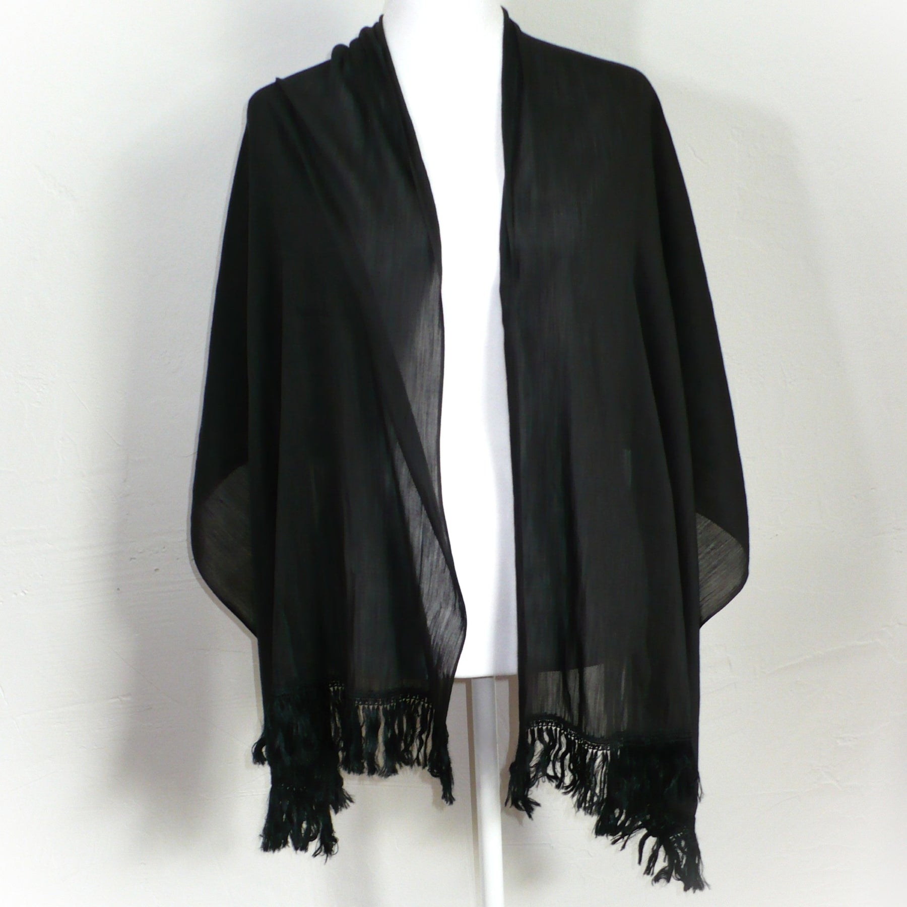 A stunning and evocative piece of Victorian mourning attire, this antique shawl is crafted from semi-sheer black silk with a soft hand and a subtle sheen that catches the light beautifully.