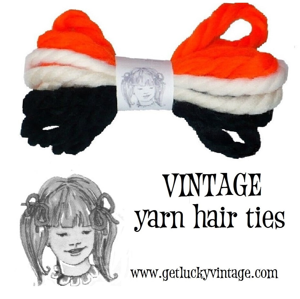We will be restocking these soon! Authentic vintage yarn hair ties are as charming as ever, perfect for adding a touch of nostalgia to your style. Our holiday-themed Halloween gift bundle includes genuine vintage hair ties from the 1960s and 1970s, all in mint condition and sourced from vintage manufacturer’s store stock.