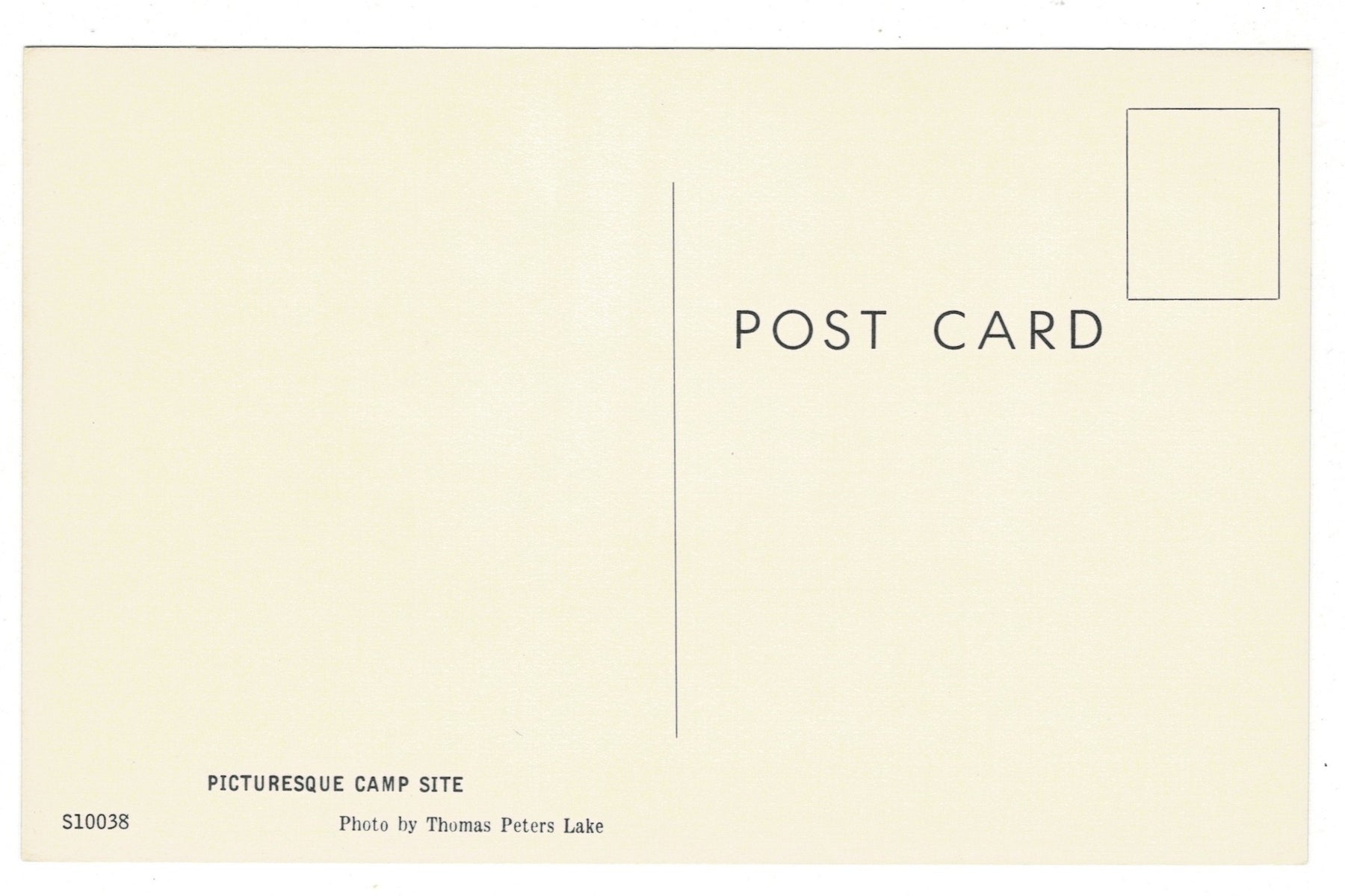 This postcard features photography by Thomas Peters and, while it does not indicate a publisher, it preserves the vivid and tranquil qualities of a classic lakeside campsite. The image is a timeless collectible for fans of vintage outdoor postcards, camping, and the scenic landscapes of Wisconsin.