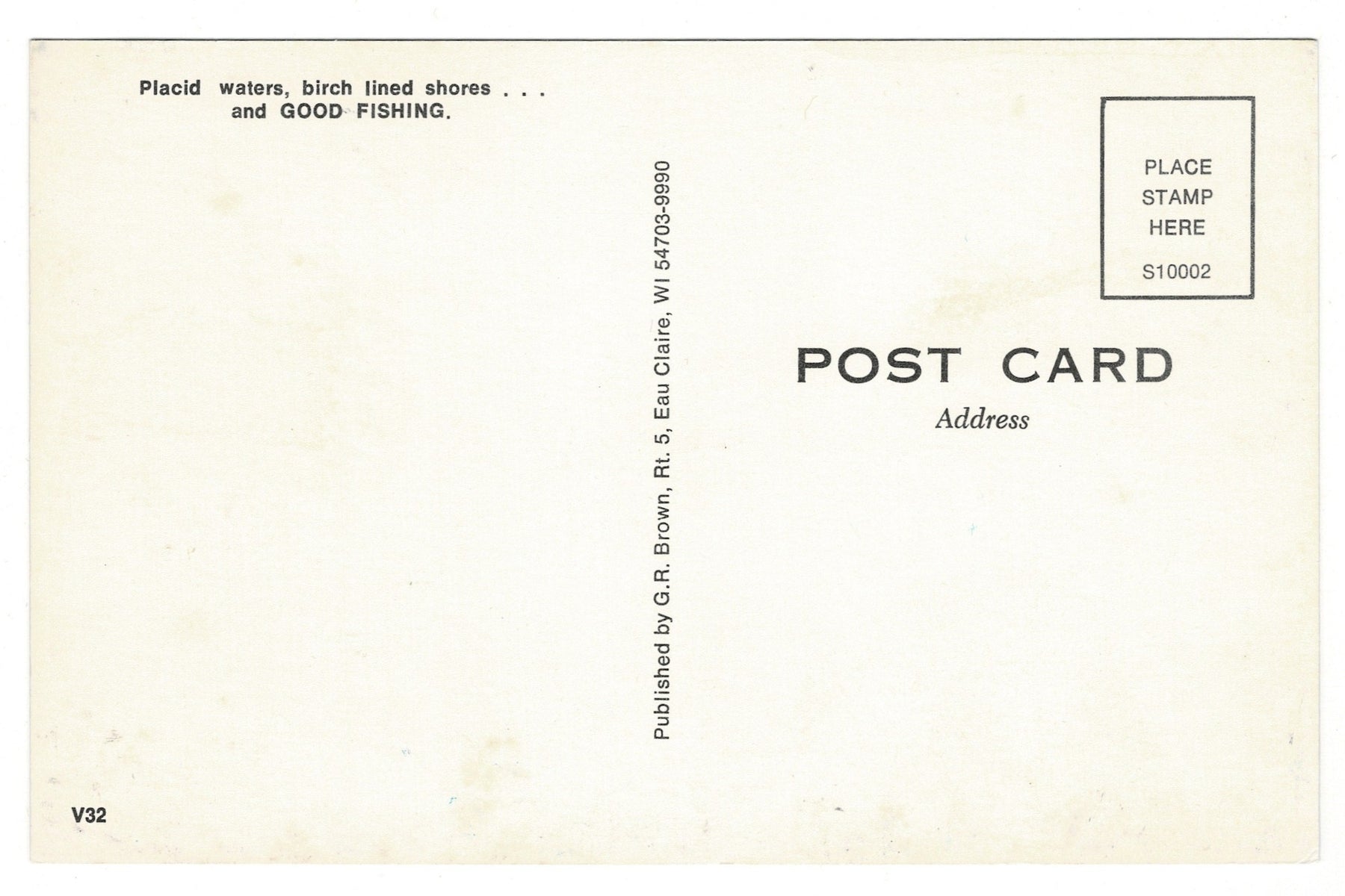 Published by G.R. Brown of Eau Claire, Wisconsin, this mid-century postcard captures the essence of Wisconsin’s scenic lakes and outdoor recreation culture. Its vivid imagery and careful composition reflect the style that made such postcards a favorite for collectors and vacationers alike.
