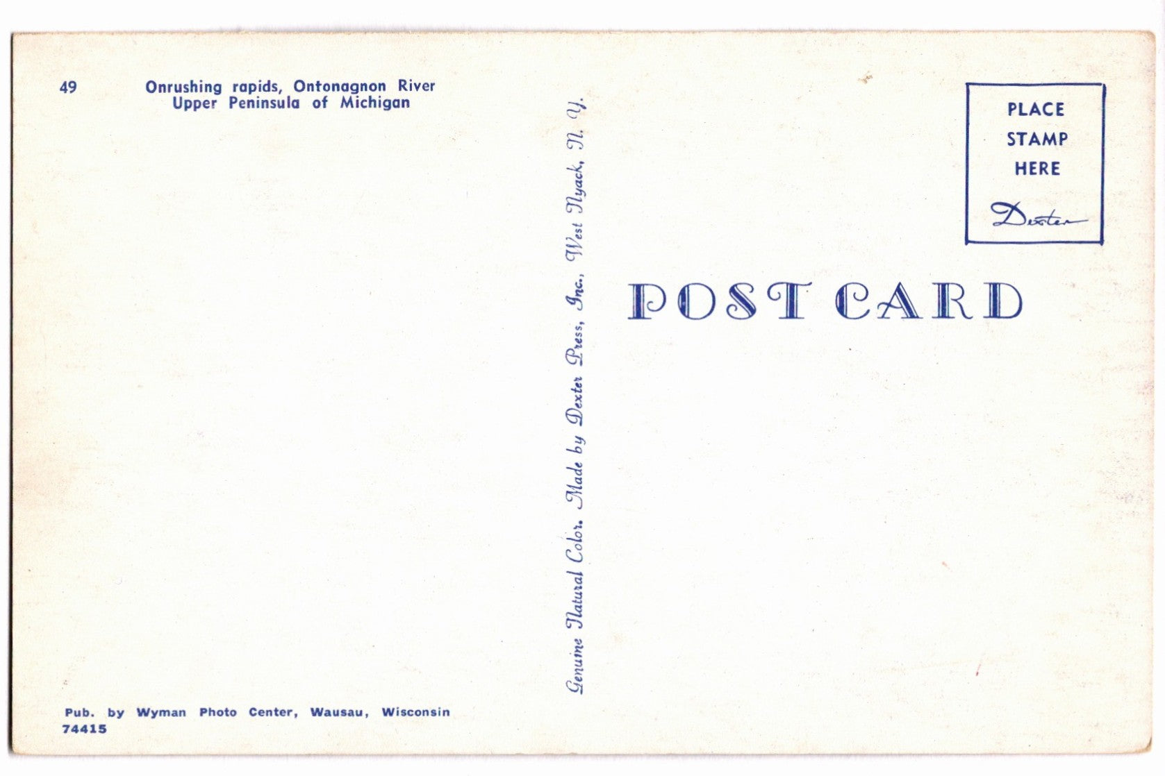 This postcard features genuine natural color photography produced by Dexter Press, Inc. and was published by Wyman Photo Center. Dexter Press was well known during the mid-twentieth century for vibrant color postcards that brought America’s scenic destinations to life for travelers and collectors.
