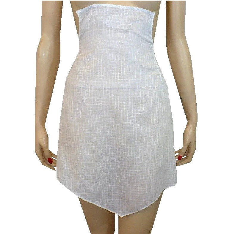 This authentic vintage pinafore full apron from the 1920s exudes classic charm. Crafted from soft cotton in a pristine white color, it showcases the meticulous craftsmanship of a handmade design. The apron fastens with a self-tie at the rear, while the top corners of the bib can be pinned onto the dress for a secure and stylish fit. Ideal for those who appreciate the elegance and craftsmanship of vintage fashion.