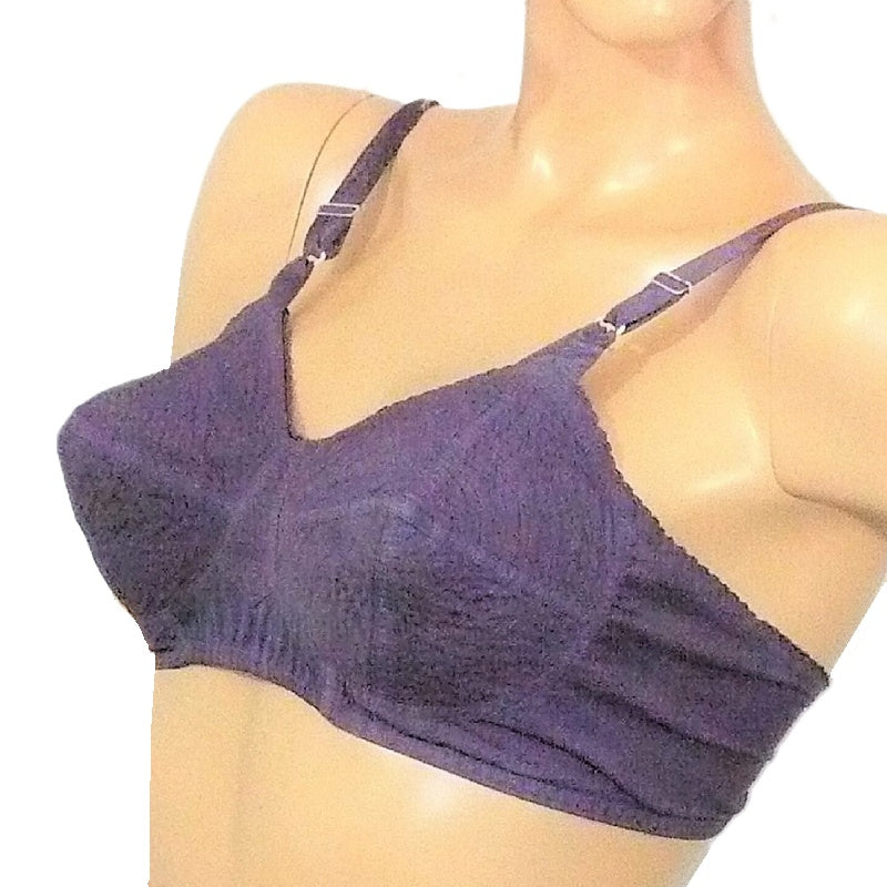 This vintage 1950s Sho Form circle-stitched bullet bra is a true gem, made in the USA with timeless craftsmanship. The soft, wireless cups offer a comfortable fit, with net-lined cups for added comfort. Featuring iconic circle stitching, this bra is crafted from soft cotton broadcloth in a subtle pale eggplant purple shade, making it practical and stylish. Perfect for those who appreciate vintage lingerie with a touch of Hollywood charm, this piece will add a classic touch to any collection. Panties are sold separately.