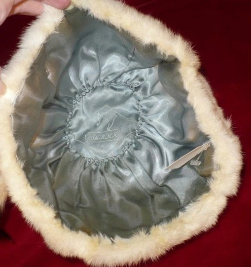 This is a rare opportunity to own exquisite fur pieces once reserved only for royalty—anyone of non-royal descent wearing ermine faced severe consequences. The stunning ermine cloche hat and collar showcase the cherished white fur of the stoat, which only turns white for about 40 days each year. Ermine from Russia is considered the finest in the world, and when you touch these pieces, you'll understand why. The hat features a Russian maker's stamp on the inside, making it a truly unique and luxurious find.
