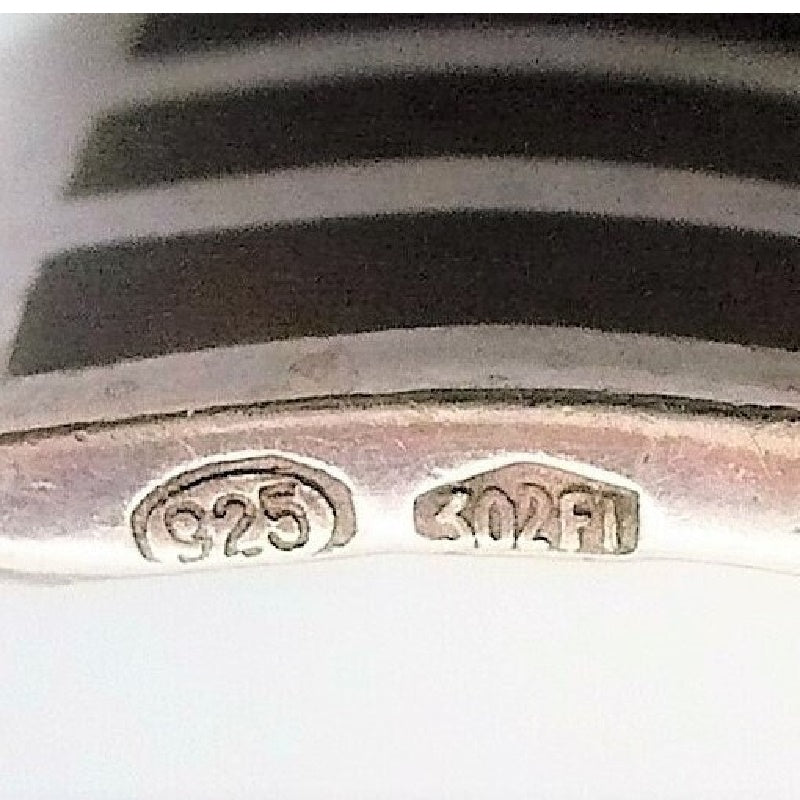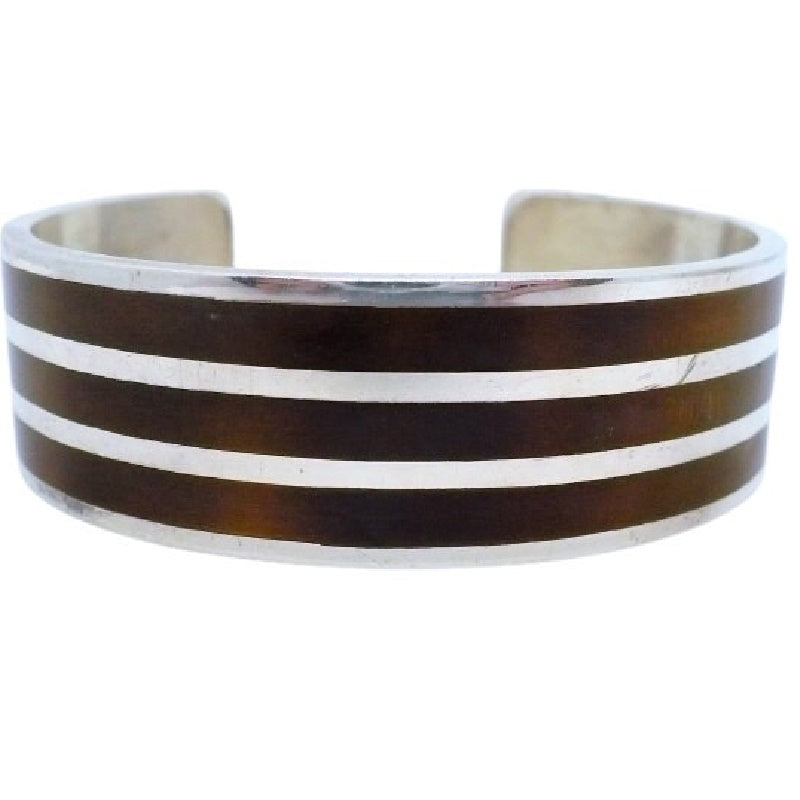 Sturdy sterling silver with brown enamel inlay cuff bracelet. 1960s modernist design, 925.